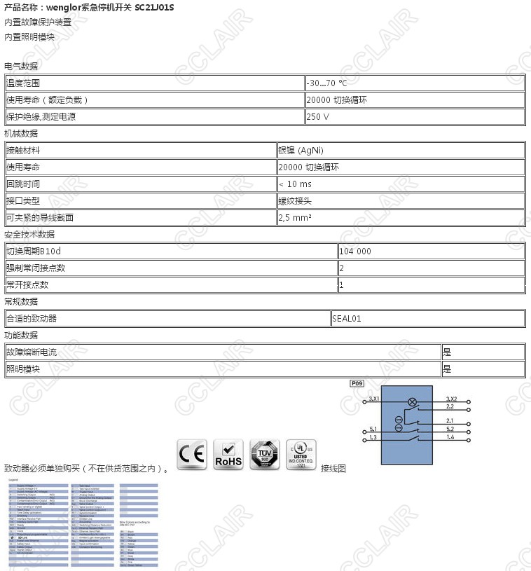 詳細(xì)信息 SC21J01S,wenglor緊急停機(jī)開(kāi)關(guān)