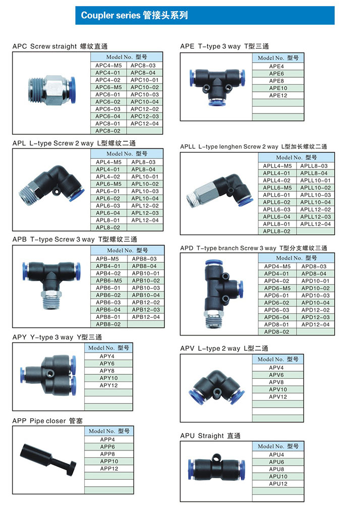 您當(dāng)前的位置:首頁 » 產(chǎn)品&解決方案 » APC4,APC6,APC8,APC10,APC12,APL4,APL6,APL8,APL10,APL12,管接頭