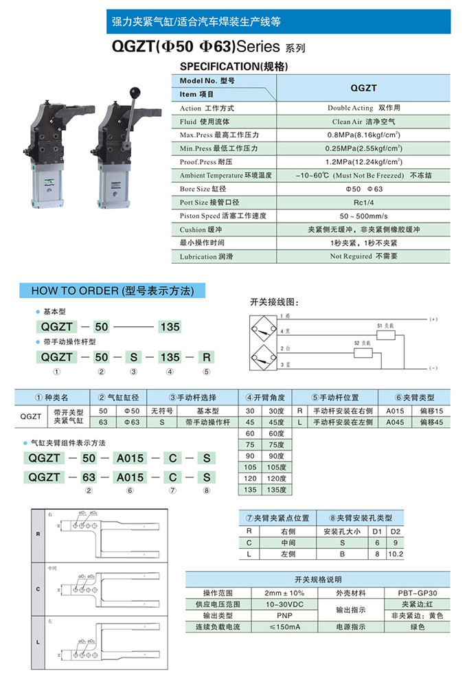 QGZT-50,QGZT-63,QGZT-50-30,QGZT-63-30,QGZT-50-S-30,QGZT-63-S-30,強(qiáng)力加緊氣缸