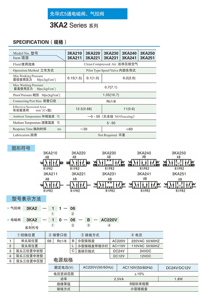 詳細信息 3KA211-06,3KA221-06,3KA231-06,3KA241-06,3KA251-06,先導(dǎo)式五通氣控閥