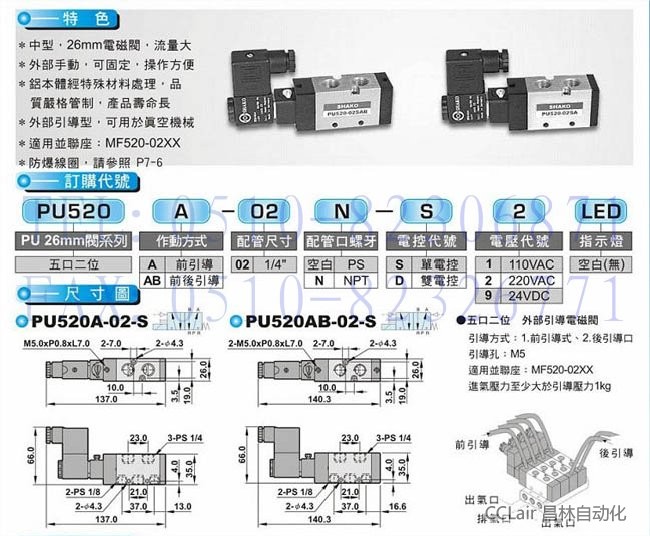 產品: 瀏覽次數:600PU520A-02-S,PU520AB-02-S,引導式電磁閥