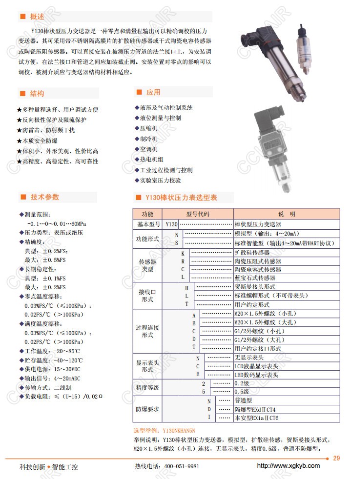 您當(dāng)前的位置:首頁 » 供應(yīng)產(chǎn)品 » Y130NKHAN2N,Y130NKHBE2N,Y130NKHAN5N,Y130棒狀型壓力變送器