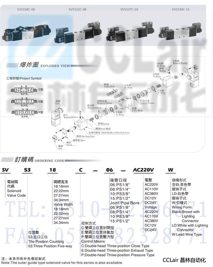 SV5322C-06,SV5318C-M5,SV5327C-08,SV5334C-10,五口二位電磁閥