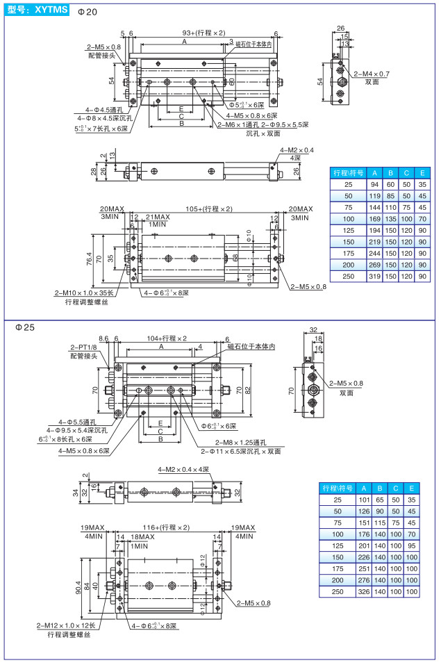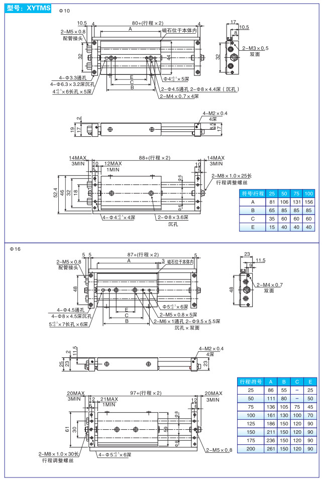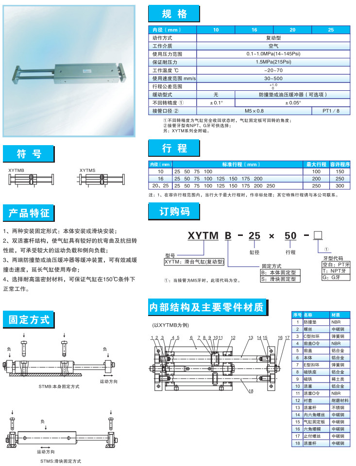 XYTMB-10*25,XYTMB-20*50,XYTMS-16*100,XYTMS-25*125,XYTMB-25*75,滑臺氣缸