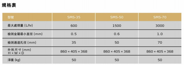 SMS-35,SMS-50,SMS-70,金屬偵測分離器