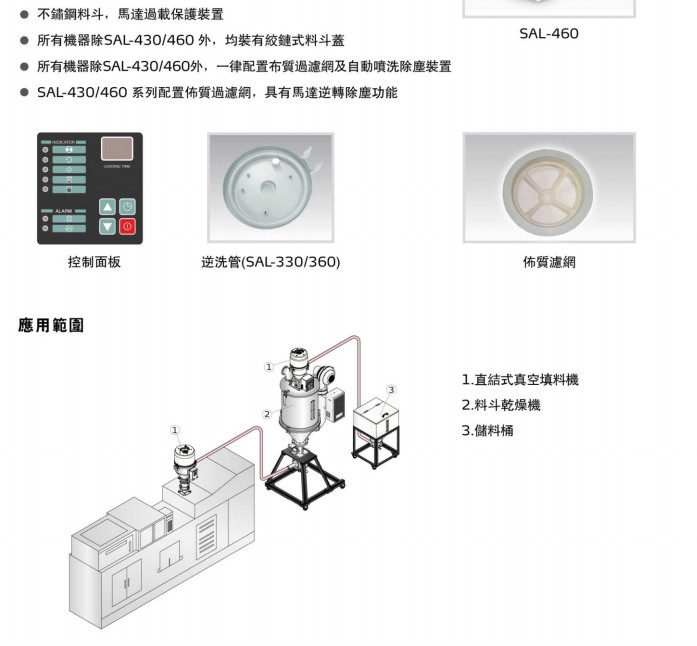詳細信息 SAL-330,SAL-360,SAL-430,SAL-460,直結式真空填料機