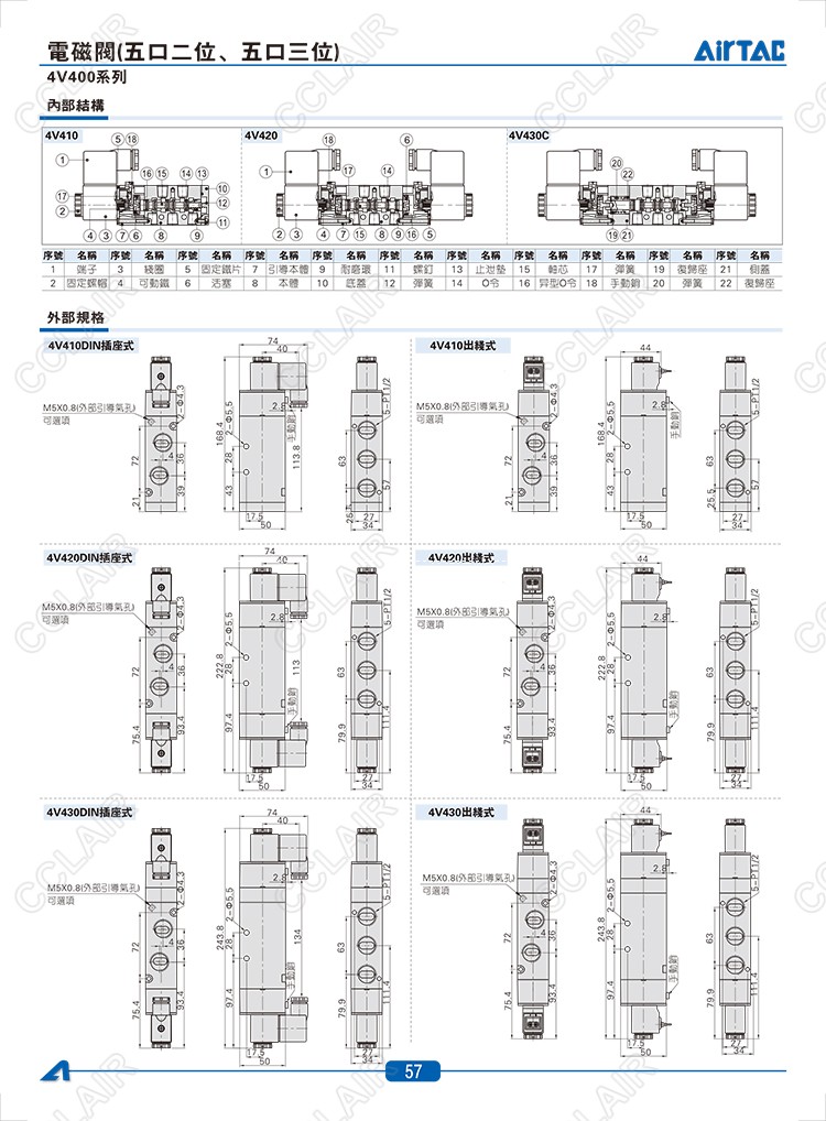 4V410-15,4V420-15,4V430C-15,4V430E-15,4V430P-15,AIRTAC電磁閥