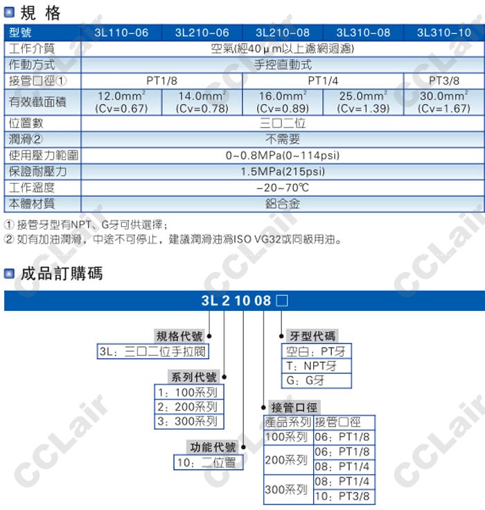 3L110-08-T,3L210-08-T,3L210-06-T,3L310-10-T,3L110-08-G,3L110-06-G,3L110-10-G,手拉閥