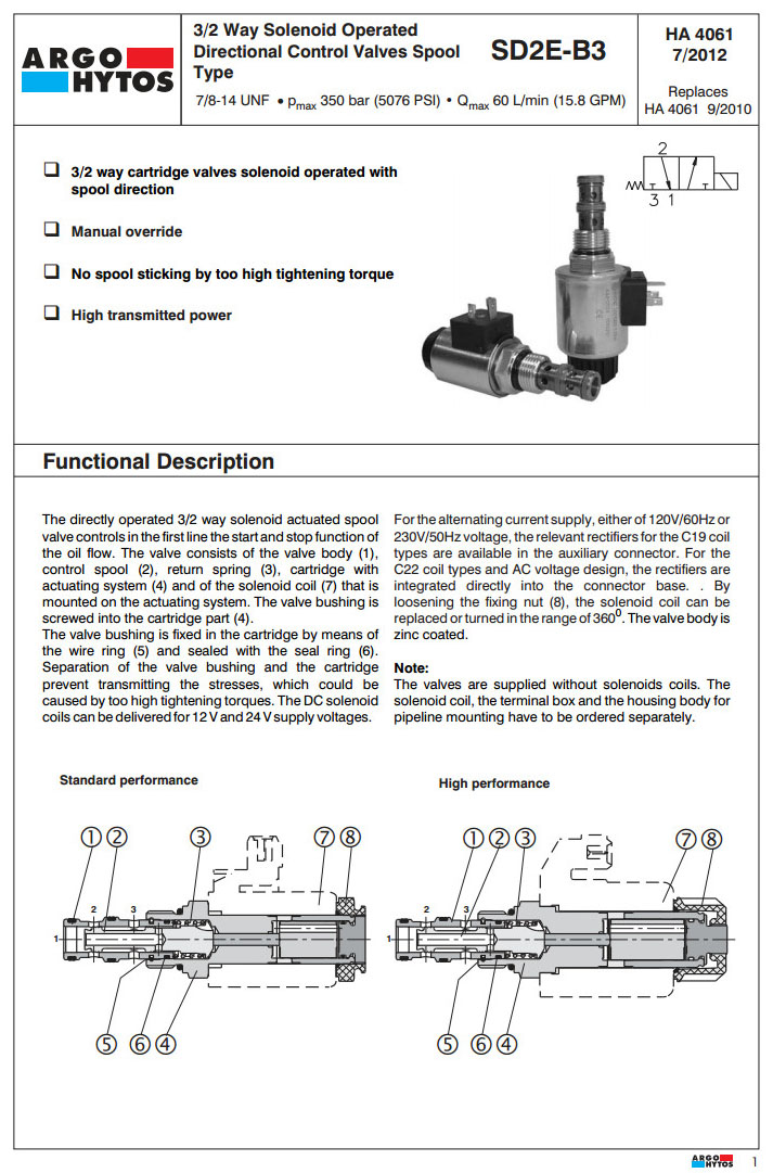 SD2E-B3/S,SD2E-B3/H,SD2E-B3/S2D21M2,SD2E-B3/S2D25M9,SD2E-B3/H2D25M5,ARGO電磁方向控制閥閥芯