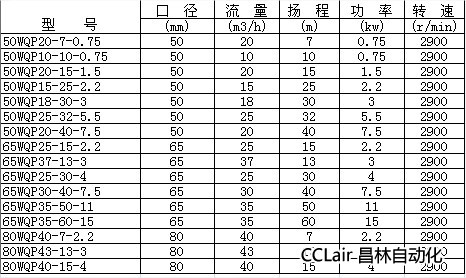 80WQP40-15-4,80WQP65-25-7.5,100WQP80-10-4,100WQP110-10-5.5,