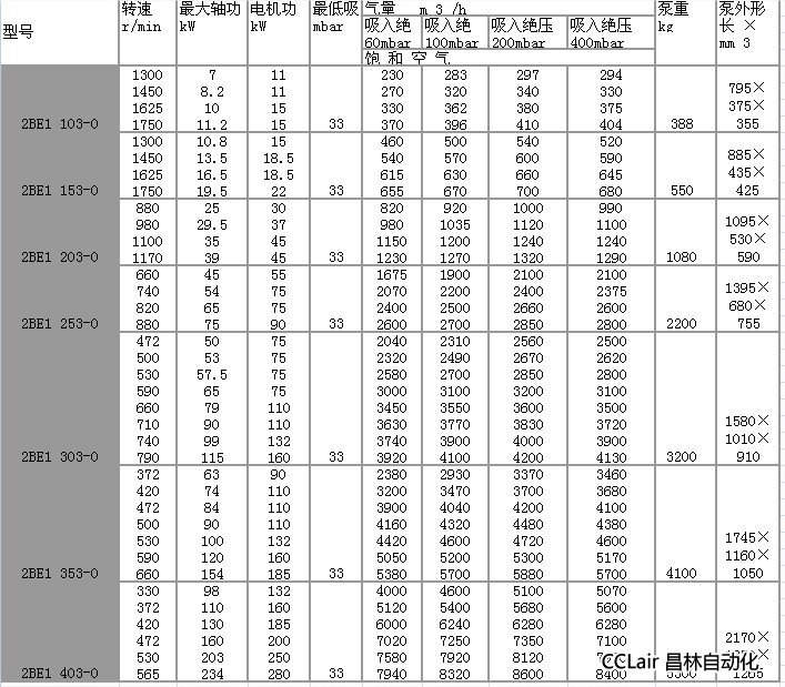 注:上列性能數(shù)據(jù),基于進(jìn)氣溫度 20 °C ,進(jìn)水溫度15 °C 。排氣壓力1013mbar 的條件。
