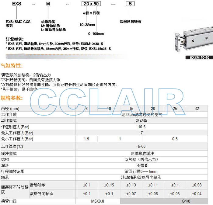 詳細(xì)信息 EXSM6X50,EXSL6X50,EXSM10X50,EXSM15X50,EXSL20X50,EXSL25X50,EXSM32X50,導(dǎo)桿氣缸