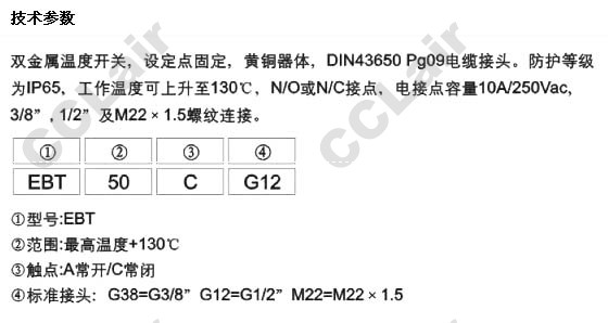 詳細信息 EBT50A-G38,EBT50A-G12,EBT50A-M22,EBT50C-G38,EBT50C-G12,EBT50C-M22,雙金屬溫度開關(guān)