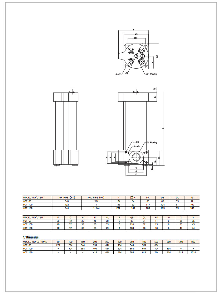 YCT63-63,YCT63-100,YCT63-160,YCT100-63,YCT100-100,YCT100-160,YCT160-63,YCT160-100,YCT160-160,拉桿氣缸