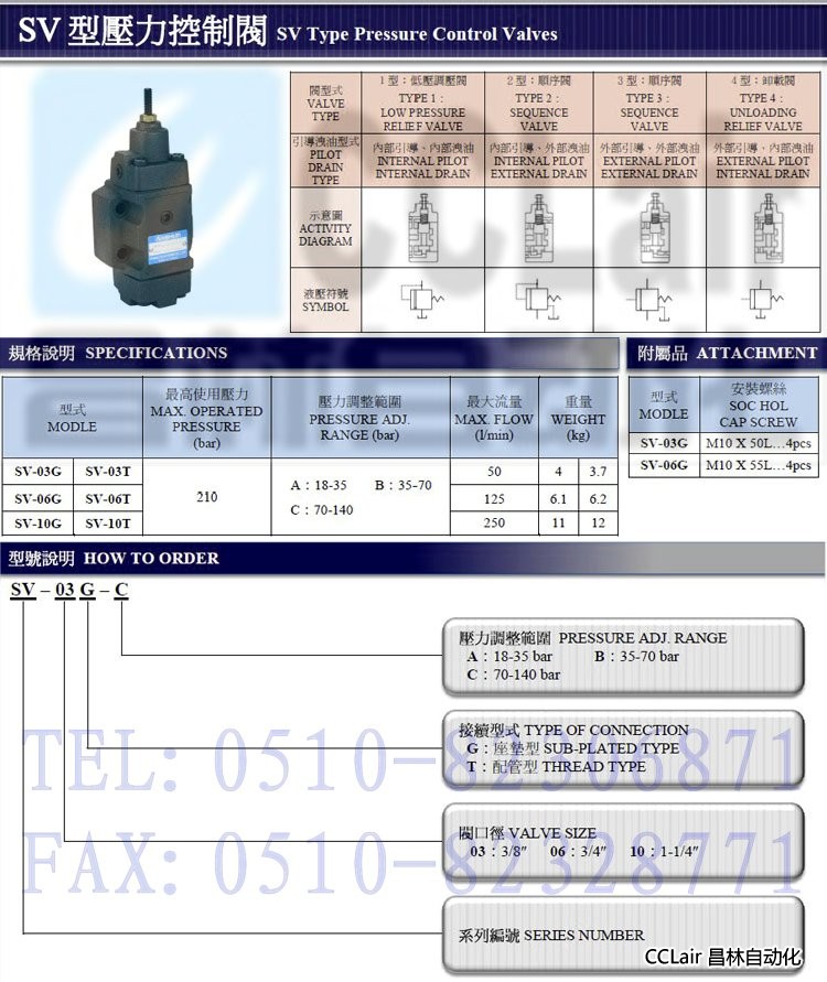 SV-03G-A,SV-03G-B,SV-03G-C,SV-03T-A,SV-03T-B,SV-03T-C,壓力控制閥