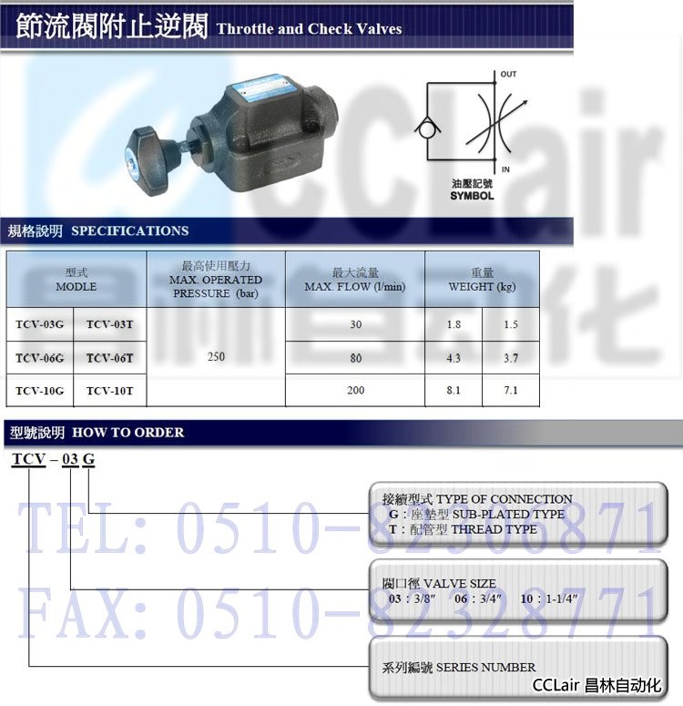 TCV-03G,TCV-03T,TCV-06G,TCV-06T,TCV-10G,TCV-10T,節(jié)流閥附止逆閥