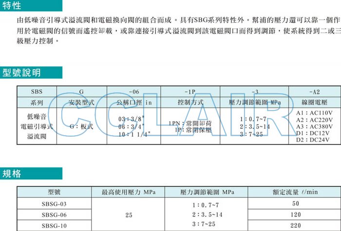 SBSG-03-1PN,SBSG-06-1PN,SBSG-10-1PN,SBSG-03-1P-2-A1,SBSG-06-1P-3-A2,低噪音電磁引導(dǎo)式溢流閥