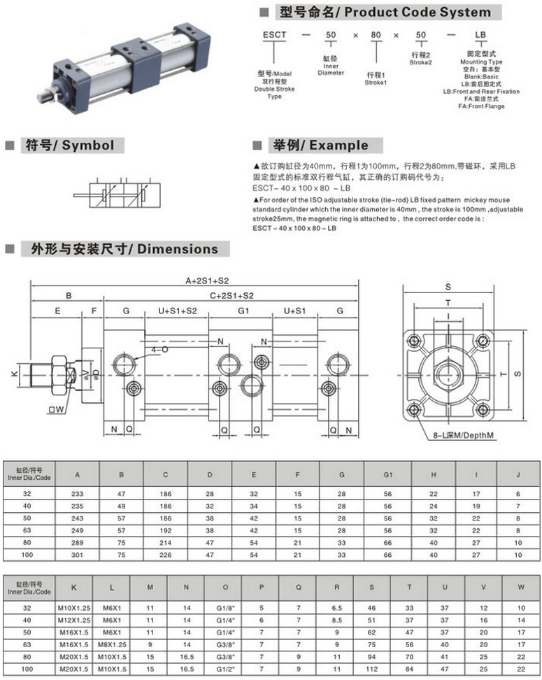 ESCT-32*80*50-LB,ESCT-40*80*50-LB,ESCT-50*80*50-LB,ESCT-63*80*50-LB,標(biāo)準(zhǔn)氣缸
