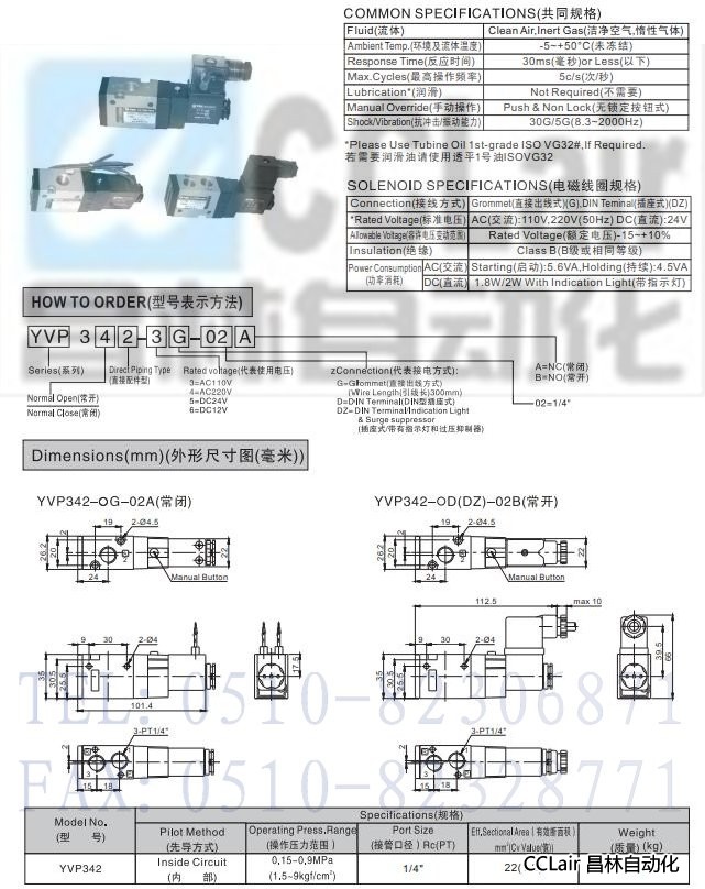 YVP342,YVP342-3G-02A,YVP342-4D-02B,3通先導(dǎo)型電磁閥