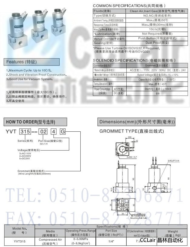 詳細信息 YVT315,YVT315-024G,3通直動型電磁閥 ![]() 共0條 相關(guān)評論 |