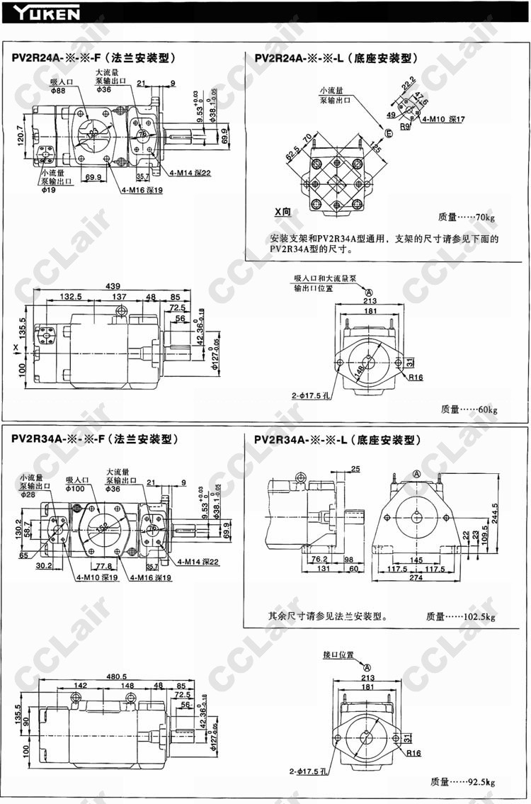 PV2R34A-116-138-F-RAAA-10,PV2R34A-116-162-F-RAAA-10,YUCIYUKEN榆次油研