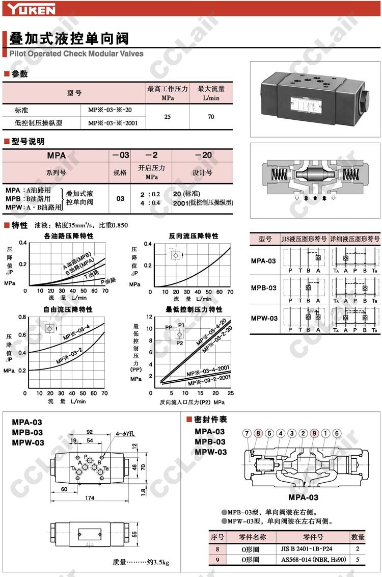 MPA-03,MPB-03,MPW-03,MPA-03-2-20,MPB-03-2-20,MPW-03-2-20,YUKEN,疊加式液控單向閥,