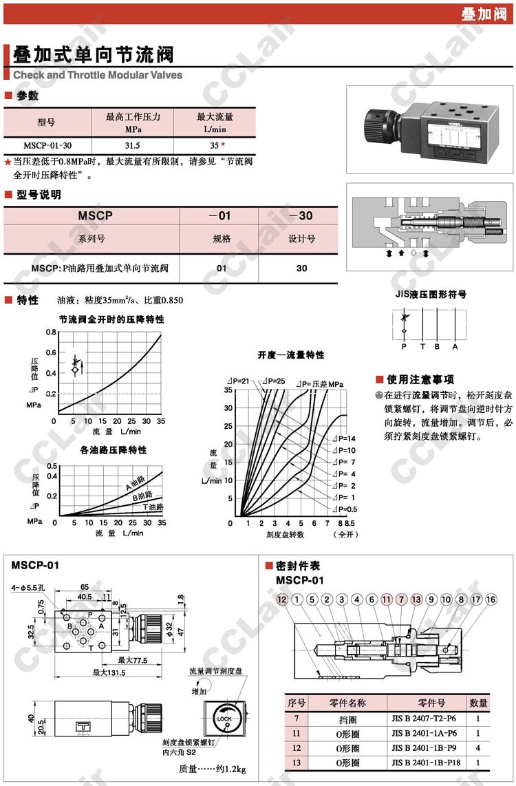詳細(xì)信息 MSCP-01-30,疊加式單向節(jié)流閥,YUCIYUKEN榆次油研