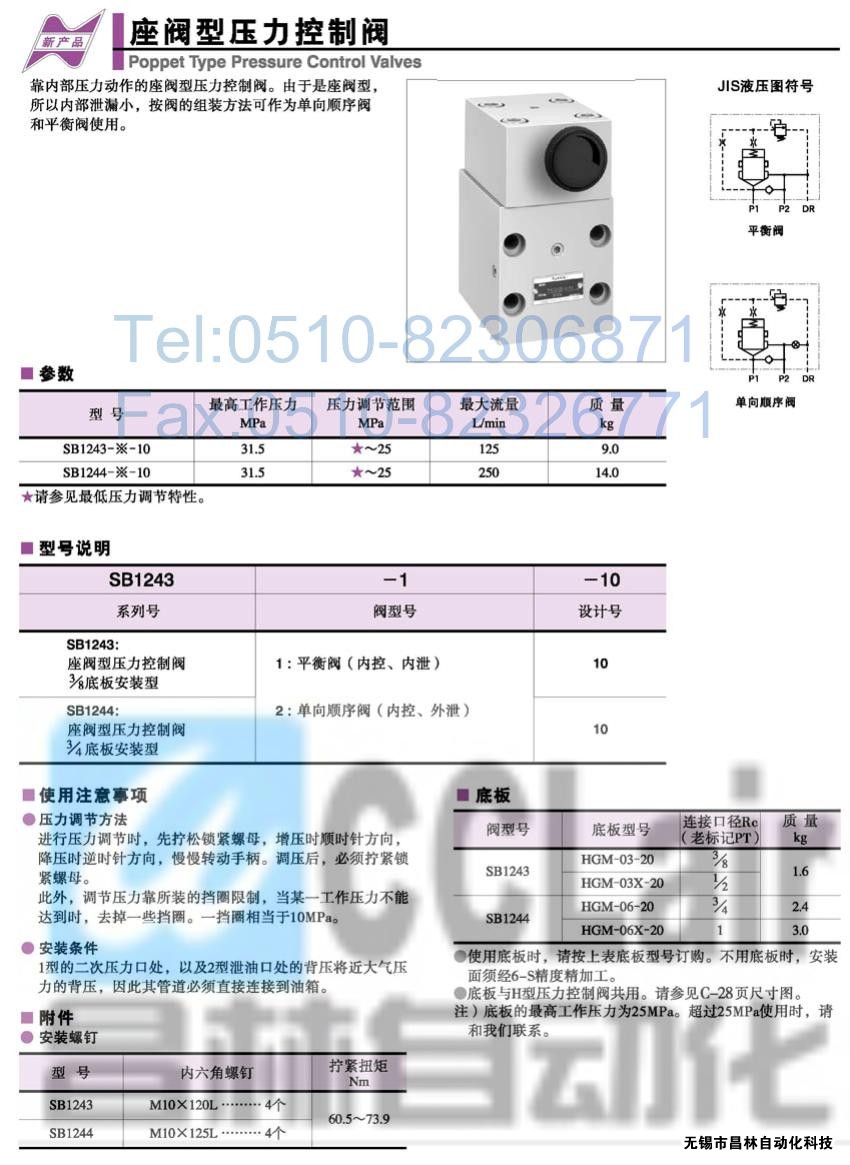 SB1243-1-10,SB1243-2-10,SB1244-1-10,壓力控制閥,榆次油研壓力控制閥,YUKEN壓力控制閥