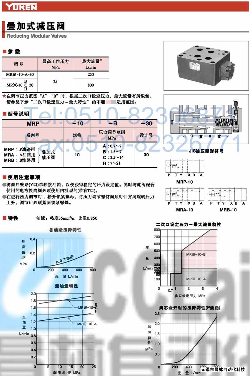 MRB-10-A-30,MRB-10-B-30,MRB-10-C-30,疊加式減壓閥,榆次油研疊加式減壓閥,YUKEN疊加式減壓閥