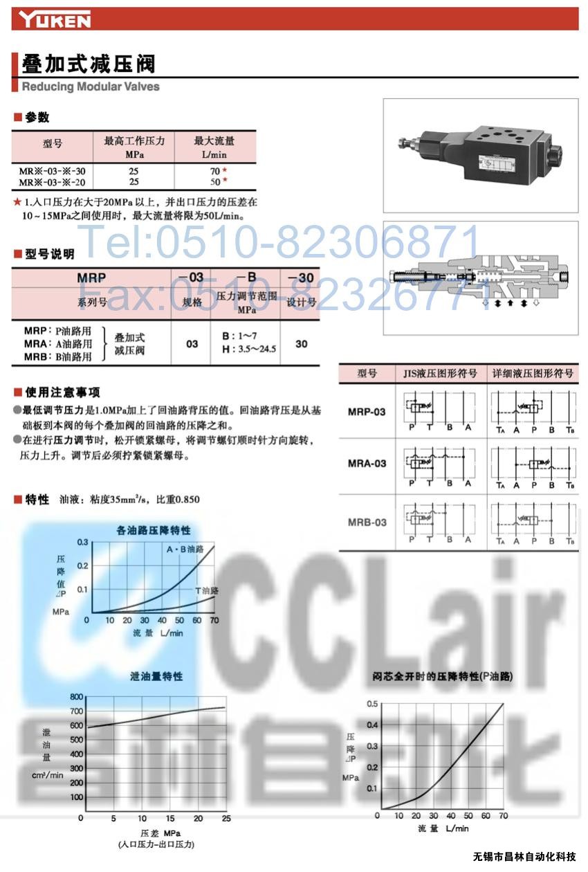 詳細信息 MRP-03-B-30,MRP-03-H-30,MRA-03-B-30,疊加式減壓閥,榆次油研疊加式減壓閥,YUKEN疊加式減壓閥