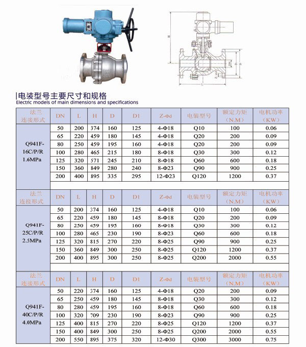 Q941F-4.0-DN125,Q941F-4.0-DN150,Q941F-4.0-DN200,電動球閥