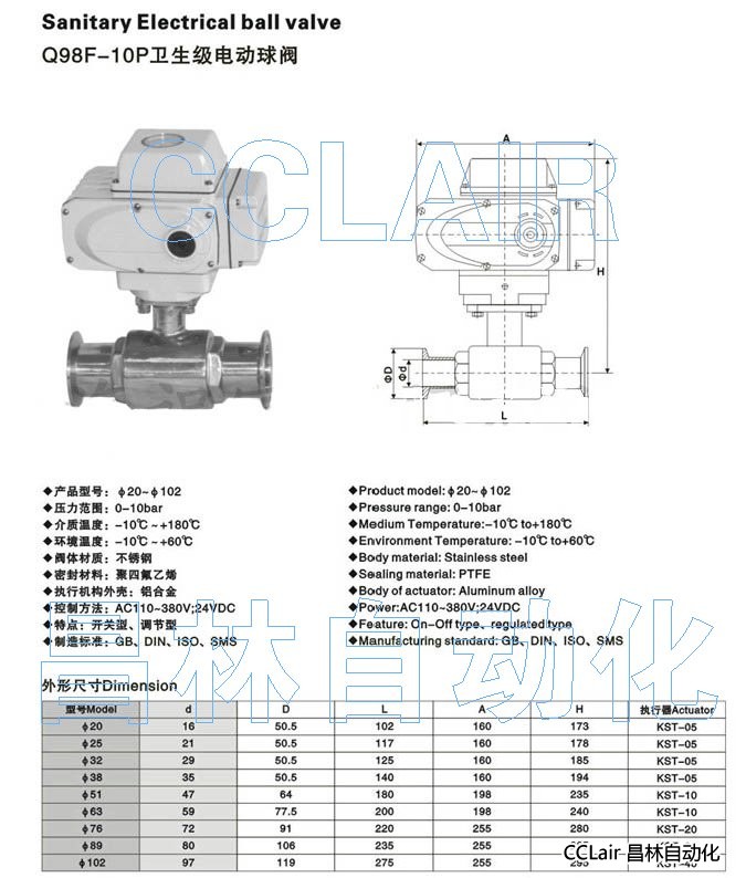 詳細(xì)信息 Q98F-10P,衛(wèi)生級(jí)電動(dòng)球閥