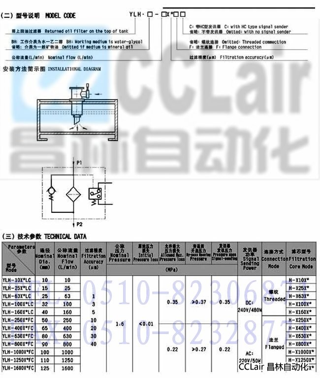 YLH-10×*LC,YLH-25×*LC,YLH-63×*LC,YLH-100×*LC,YLH-160×*LC,YLH-250×*FC,箱上回油過濾器