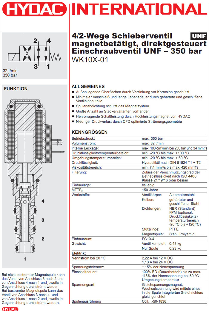 WK10X-01-C-N-24DG,WK10X-01-C-N-230AG,HYDAC電磁4/2方向滑閥