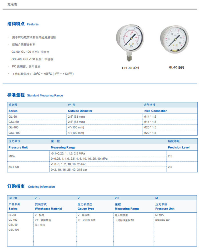 GL-60,GL-100,GSL-60,GSL-100,GL-60Z-V2.5M,GL-100Z-V2.5M,GSL-60-2.5M,充液表 |