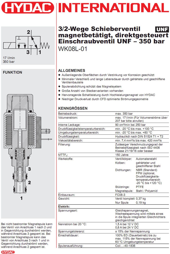 WK08L-01-C-N-24DG,WK08L-01-C-N-230AG,HYDAC二位三通方向滑閥