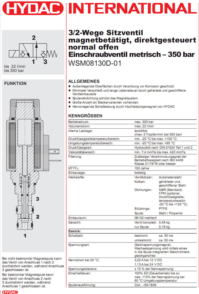 WSM08130D-01-C-N-12DG,WSM08130D-01-C-N-24DG,WSM08130D-01-C-N-230AG,HYDAC二位三通方向提升閥 |