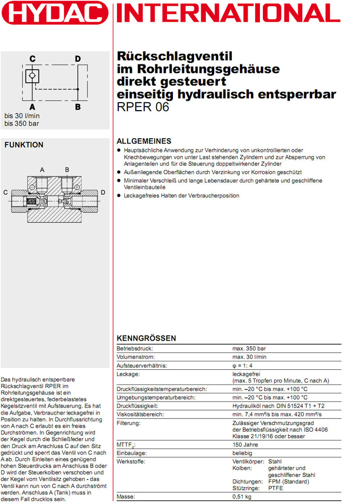 RPER06-011-0.5,HYDAC止回閥