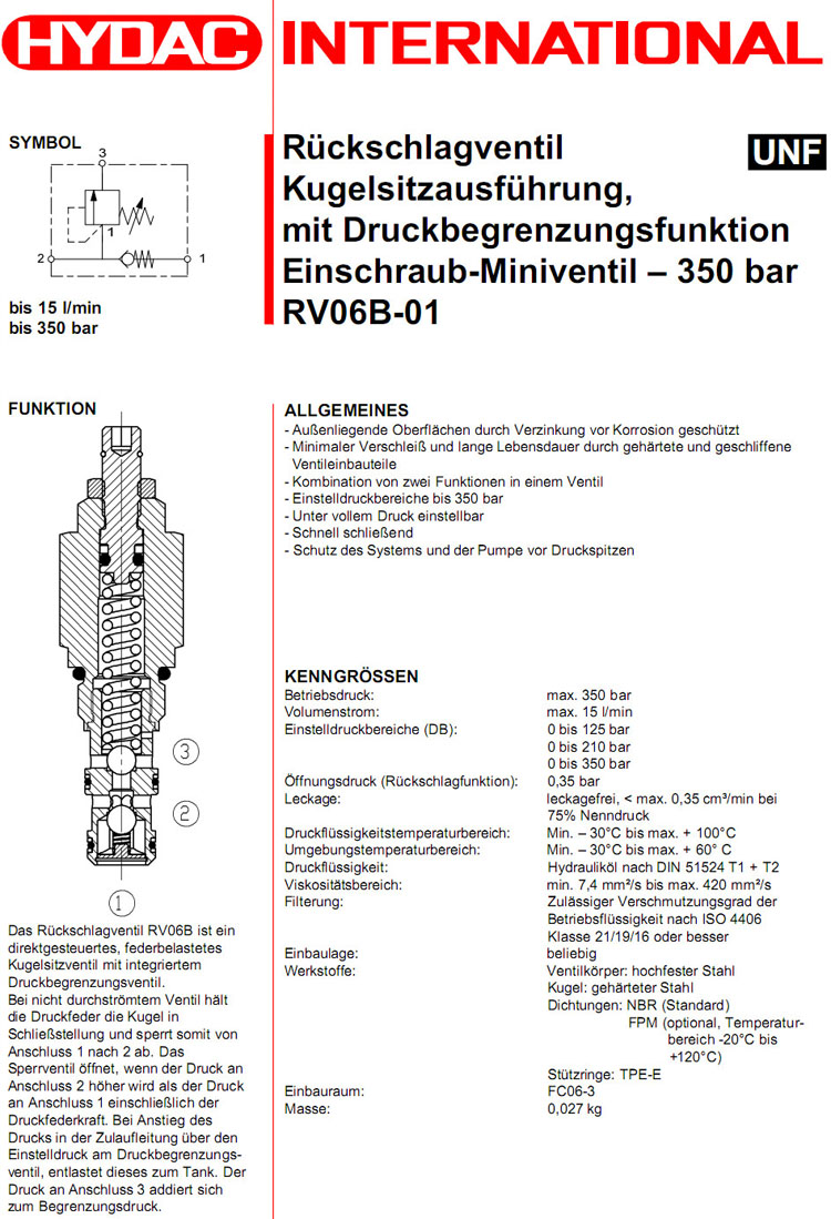 RV06B-01-C-N-300V,RV06B-01-C-N-500V,HYDAC止回閥