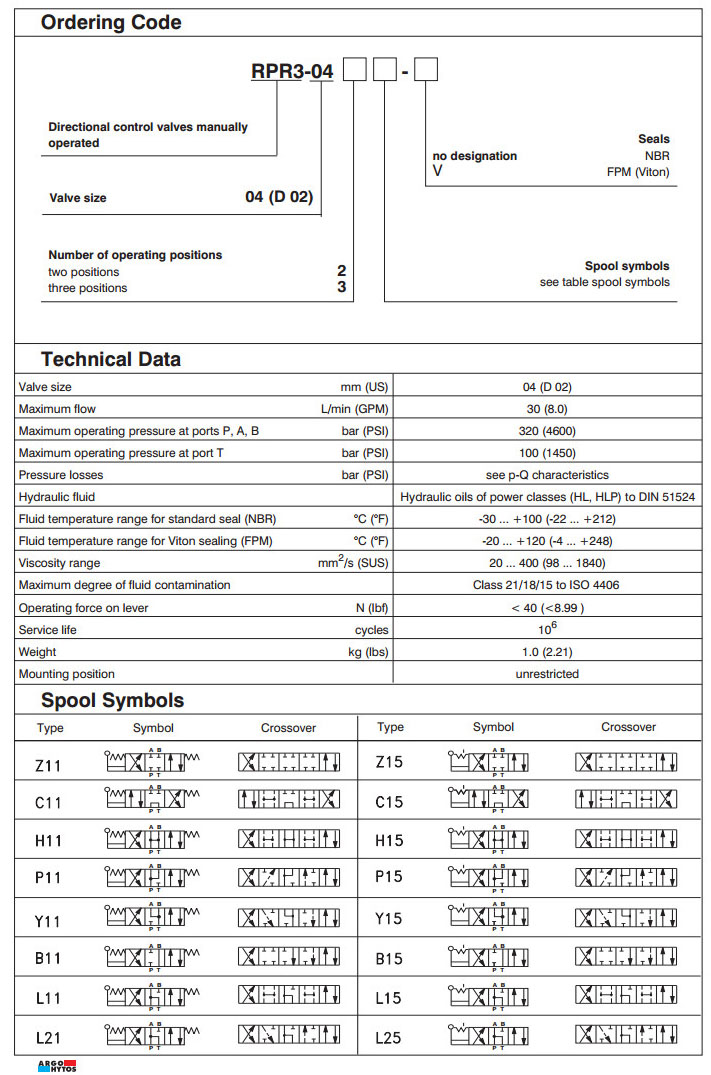 RPR3-042,RPR3-043,RPR3-042Z11,RPR3-043Z11,RPR3-042L21,RPR3-043Y11,RPR3-042R11,ARGO手動(dòng)方向控制閥