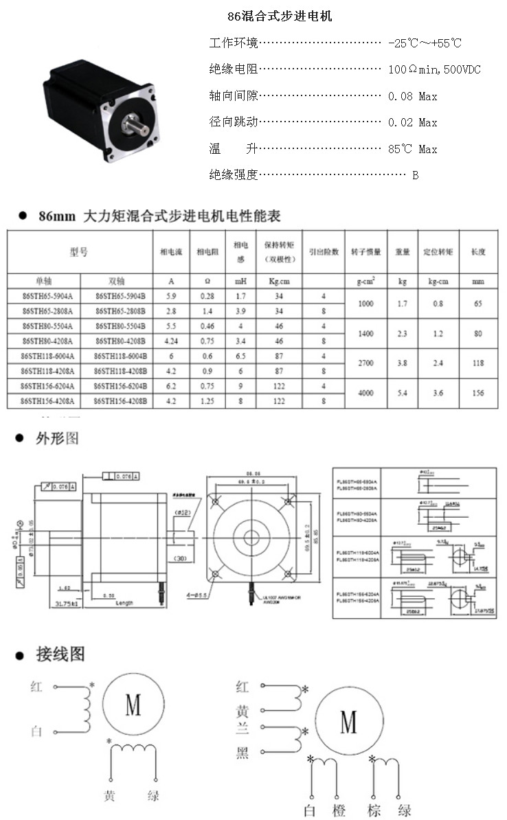 86STH65-5904A,86STH65-2808A,86STH80-5504B,86STH80-4208B,86混合式步進(jìn)電機(jī)