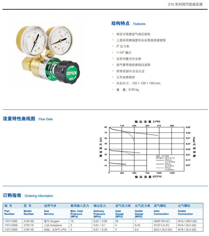 210X-80,210Y-15,210F-40,輕巧型減壓器