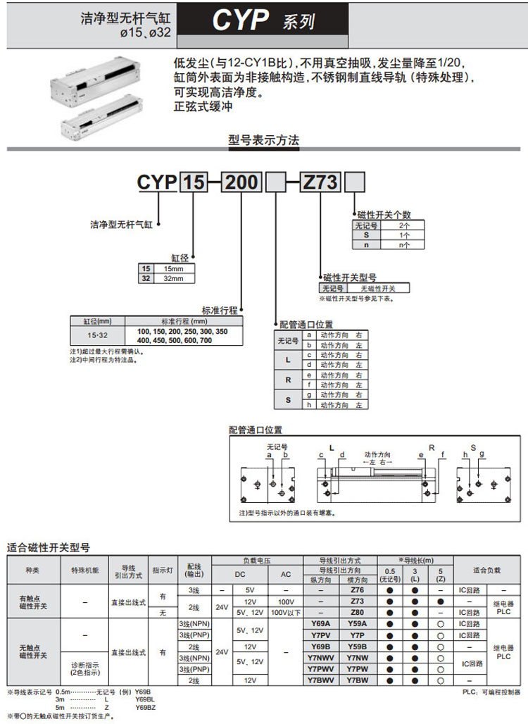 CYP15-100,CYP32-100,CYP15-150,CYP32-150,CYP15-200,CYP32-200,SMC潔凈型無桿氣缸