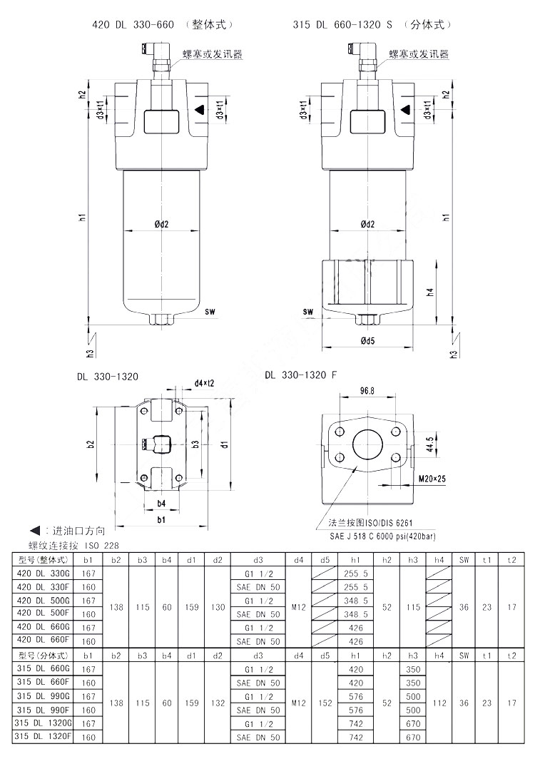 420DL330,420DL500,420DL660,315DL660S,315DL990S,315DL1320S,420DL330KN3,420DL660KN20,單筒高壓管路過濾器