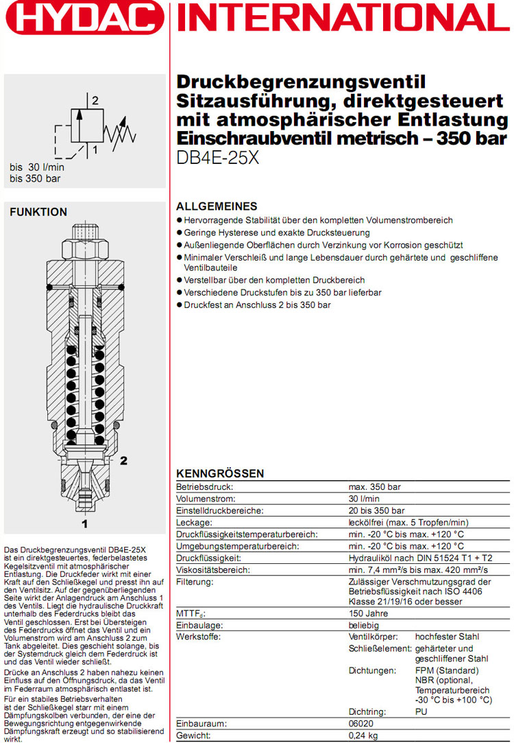 DB4E-25X-350V,HYDAC直動(dòng)減壓閥