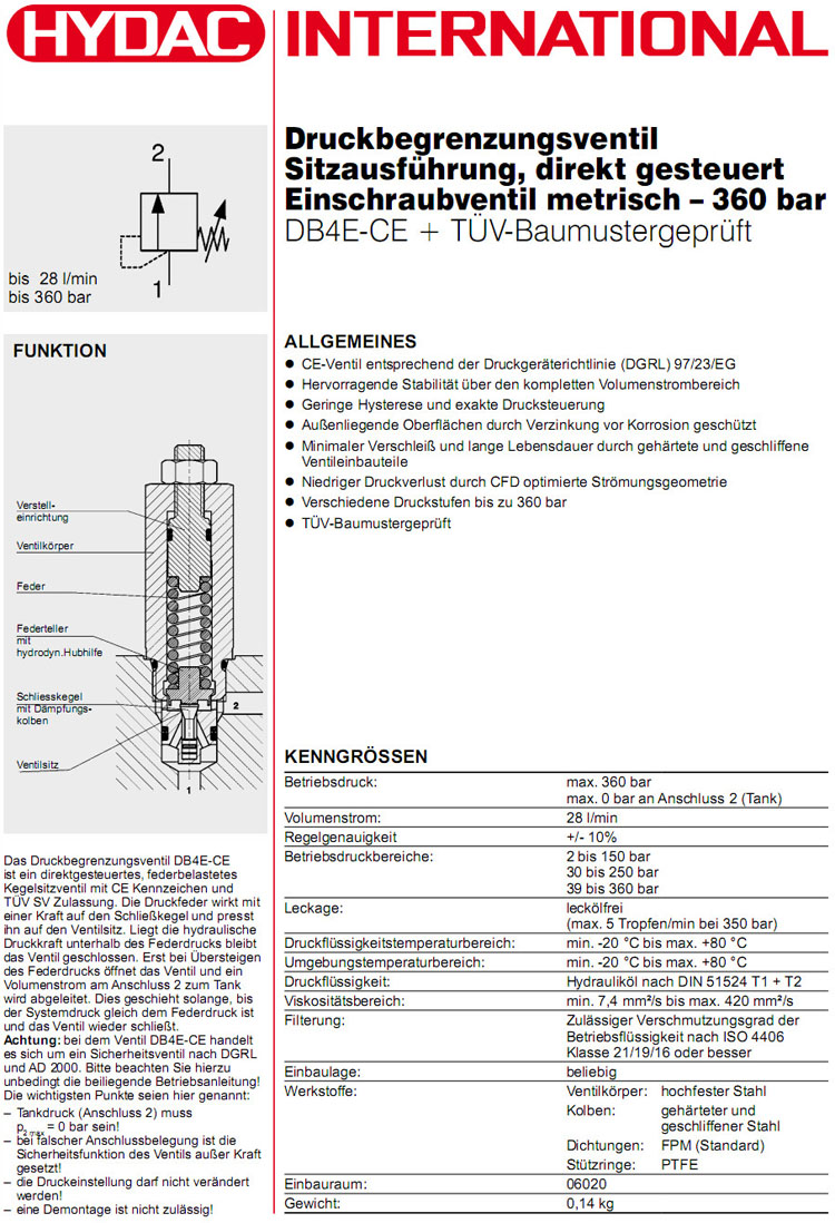 DB4E-013-CE1637,HYDAC直動減壓閥