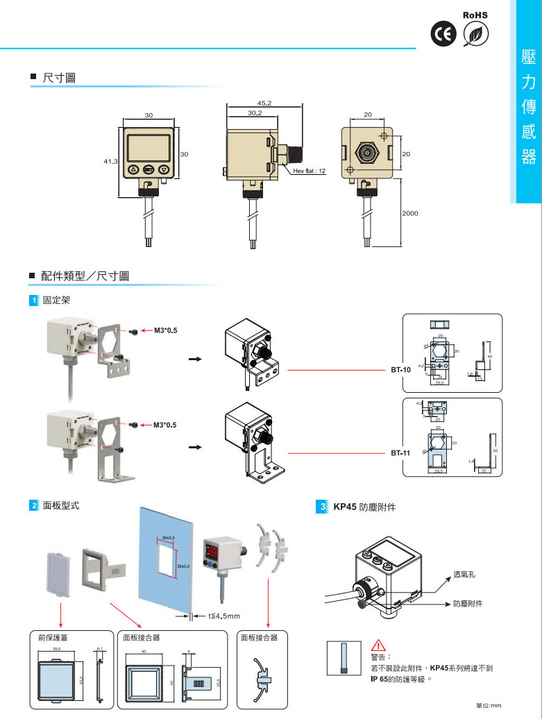 KP45C,KP45V,KP45P,KP45C-010-F1,KP45V-010-F2,KP45P-010-F3,KP45C-031-F2,KP45P-030-F2,KIDA壓力傳感器