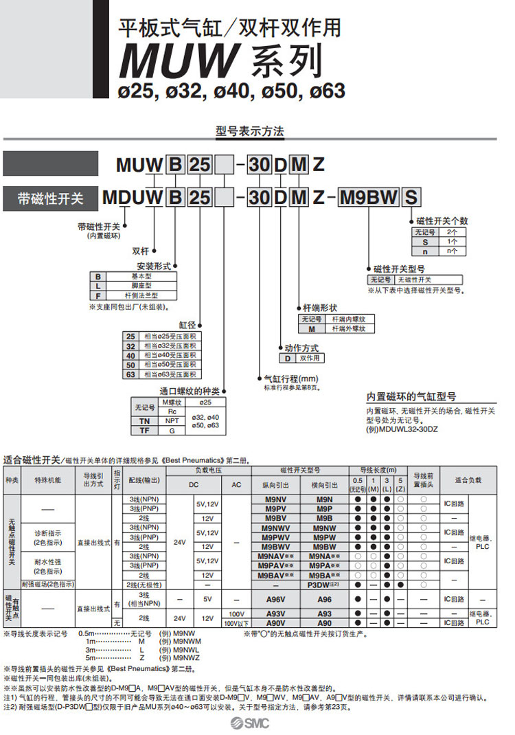MDUWB25-300D MDUWB32-5D MDUWB32-10D MDUWB32-15D MDUWB32-20D MDUWB32-25D MDUWB32-30D MDUWB32-35D MDUWB32-40D SMC平板式氣缸