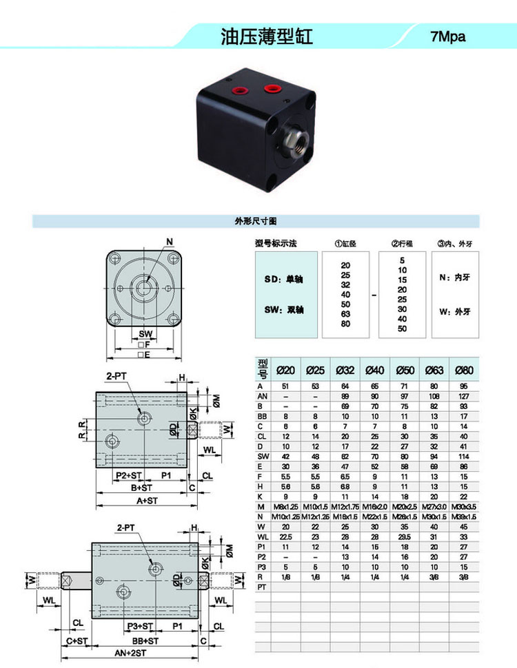 SD20,SD25,SD32,SD40,SD50,SD63,SD80,SW20,SW25,SW32,SW40,SW50,SW63,SW80,薄型油壓缸 |