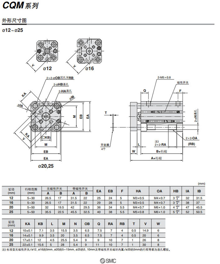 CQMA32-5,CQMA40-5,CQMA50-10,CQMA63-10,CQMA80-10,CQMA100-10,SMC薄型氣缸